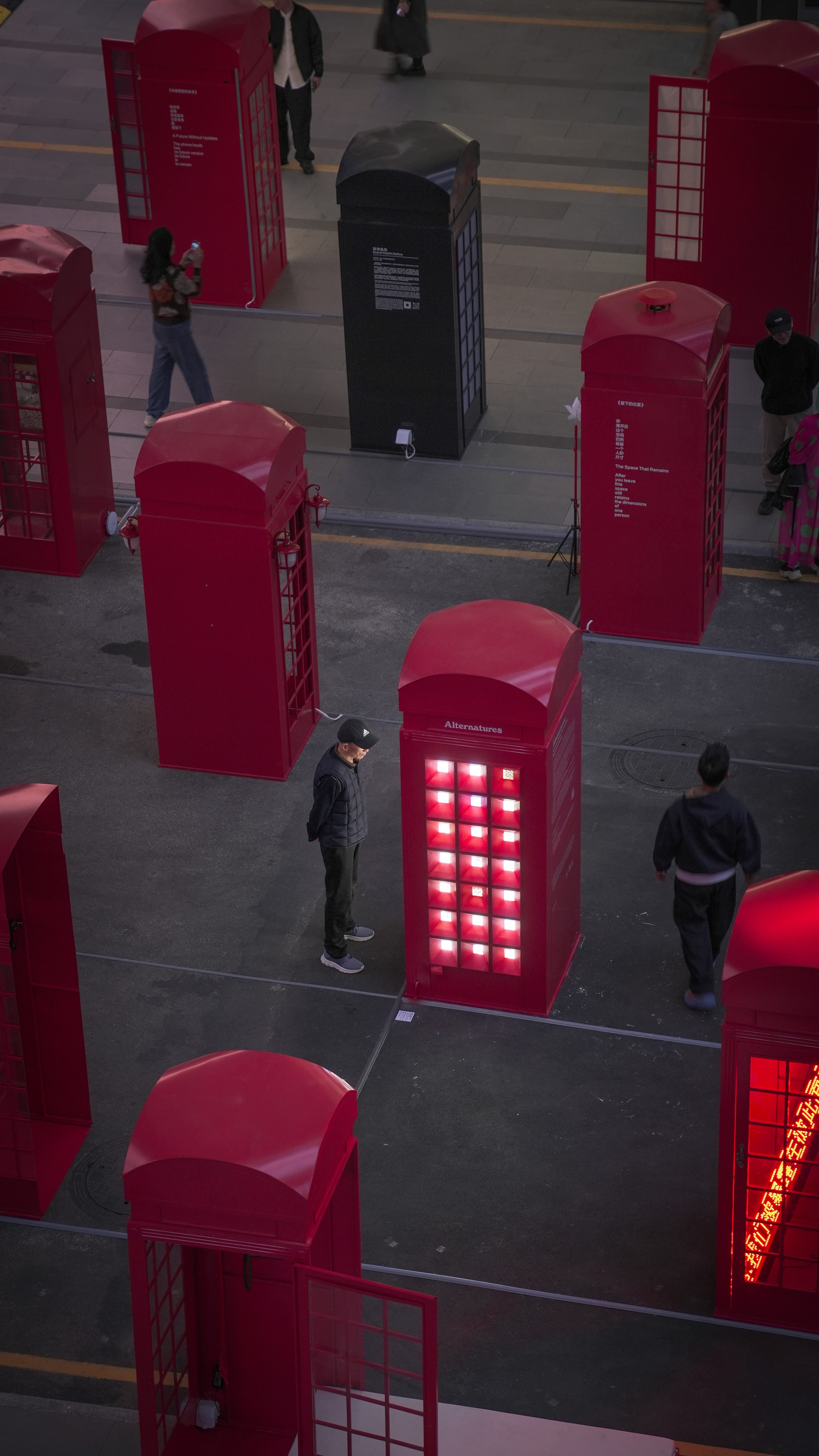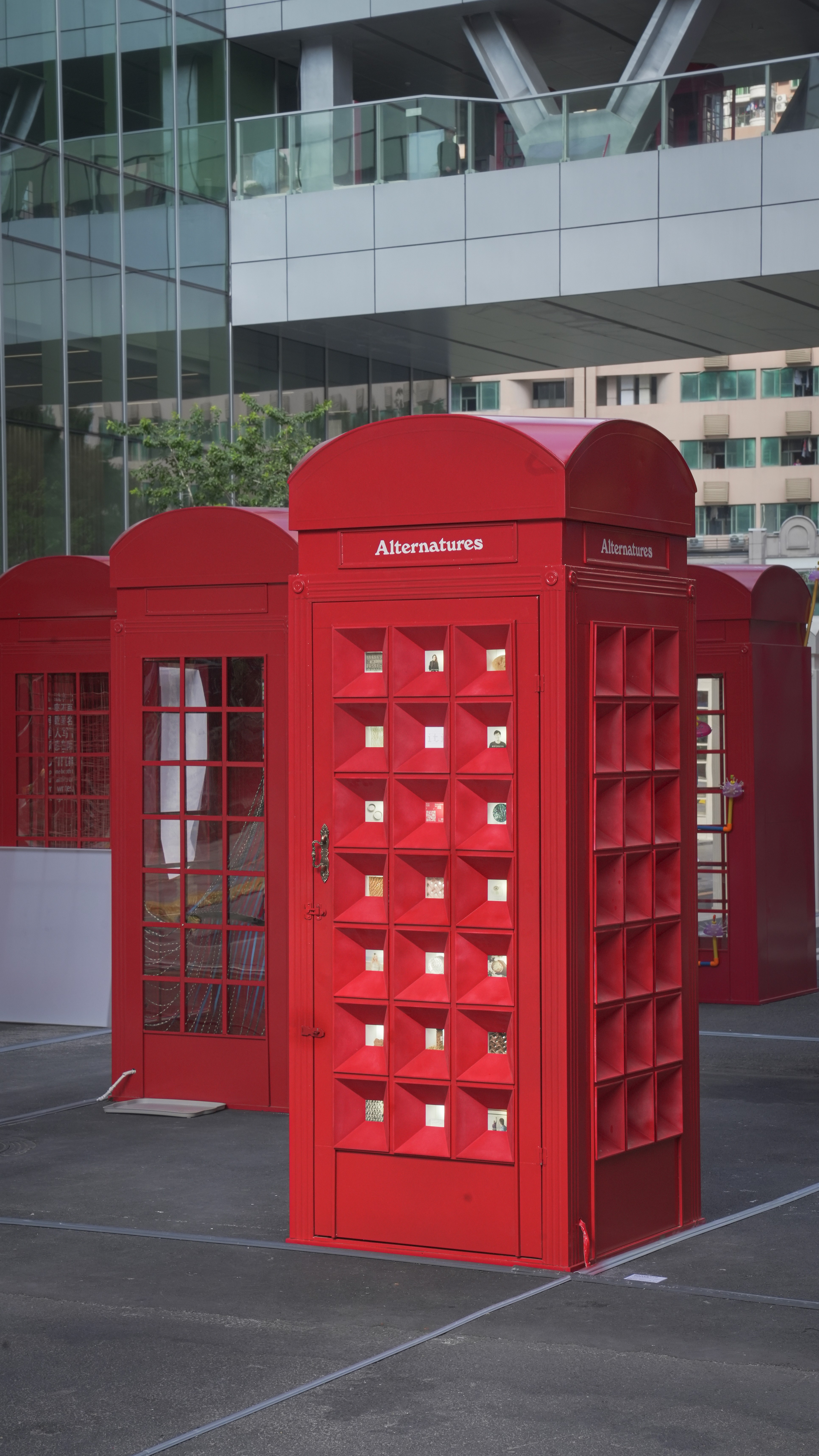 A telephone booth provided by the exhibition organizers became the starting point of the design. Instead of treating it as a fixed object, I reworked it as a compact exhibition interface that visitors could look into through a series of openings. As an icon of intimate connection and exchange, the booth became a structural device for encountering experiments, concepts, people, and messages from the lab. Through this transformation, an existing object was turned into a dense spatial and narrative container for alternative material futures.