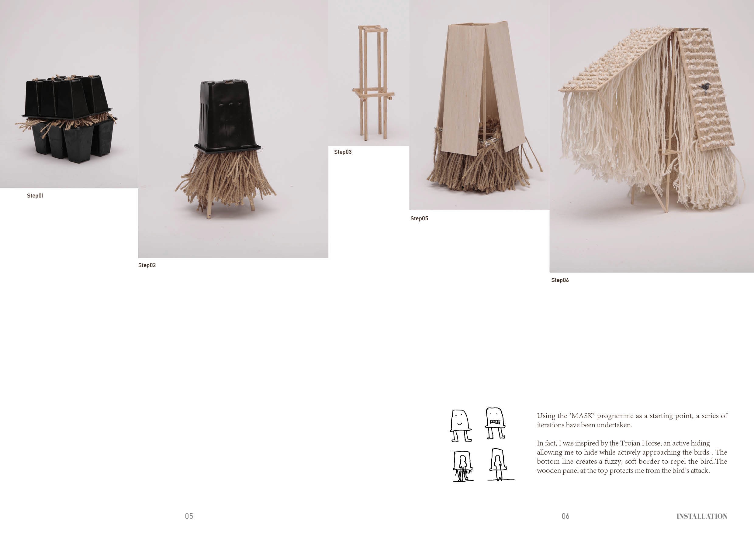 The project began with Hitchcock’s The Birds, not simply as a cinematic reference, but as a metaphor for the external world when it becomes hostile, irrational, and difficult to negotiate. I was interested in the feeling of being exposed to a threat that is everywhere yet unstable, and in the question of how one might survive within such a condition. Must one retreat completely, remain partially visible, or actively construct new forms of camouflage and resistance?