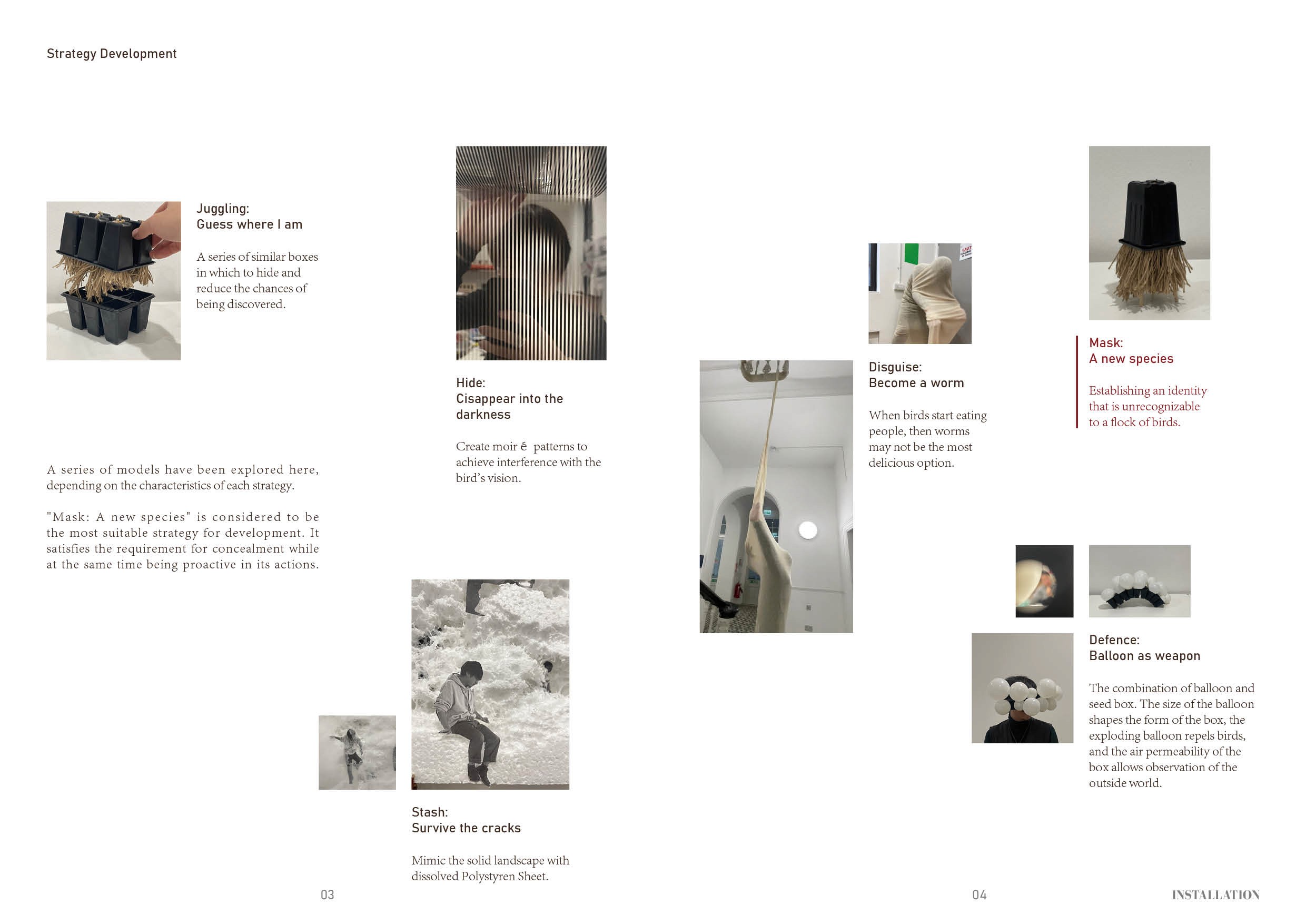 From this question, I developed a series of strategic propositions organised around different modes of hiding and acting: passive or proactive, complete or incomplete. These positions were tested through diagrams, small models, and formal iterations. Among them, the “mask” strategy became the most productive, as it allowed concealment while still retaining agency. The project gradually shifted from a conceptual mapping of survival tactics to the design of a movable spatial prototype capable of buffering, disguising, protecting, and observing at the same time.