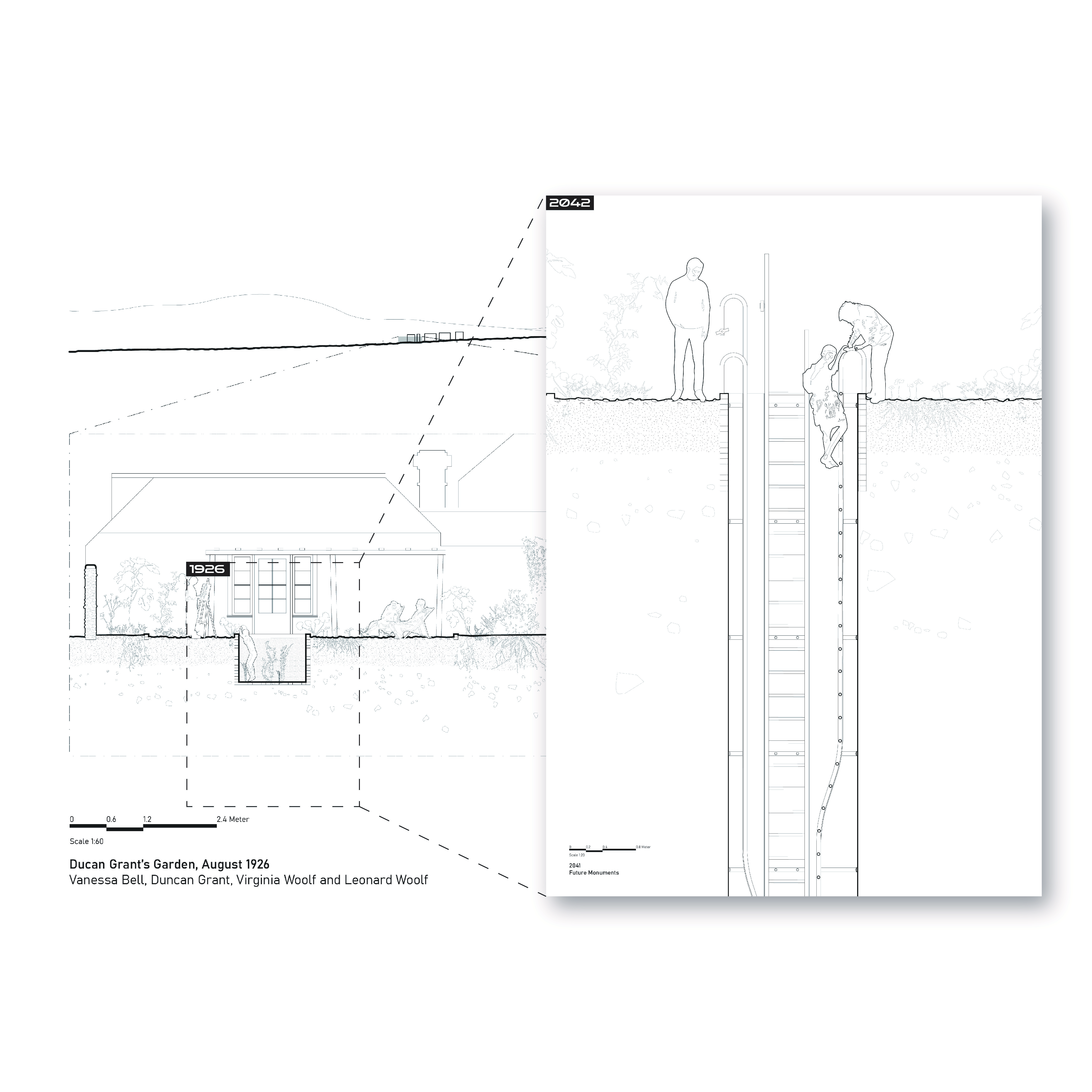No Signal Land therefore treats Charleston not as a backdrop, but as the conceptual origin of a new monumentality. Rather than commemorating the Bloomsbury group through static representation, the project extends their gesture into the present by proposing a journey of temporary disconnection. Through speculative monuments, experience vouchers, and spatial routes, it asks visitors to enter a condition that echoes why Charleston mattered in the first place: a place where one steps away from dominant systems in order to recover attention, perception, and a different relation to life. The monument here is no longer an object to look at, but a state to inhabit.