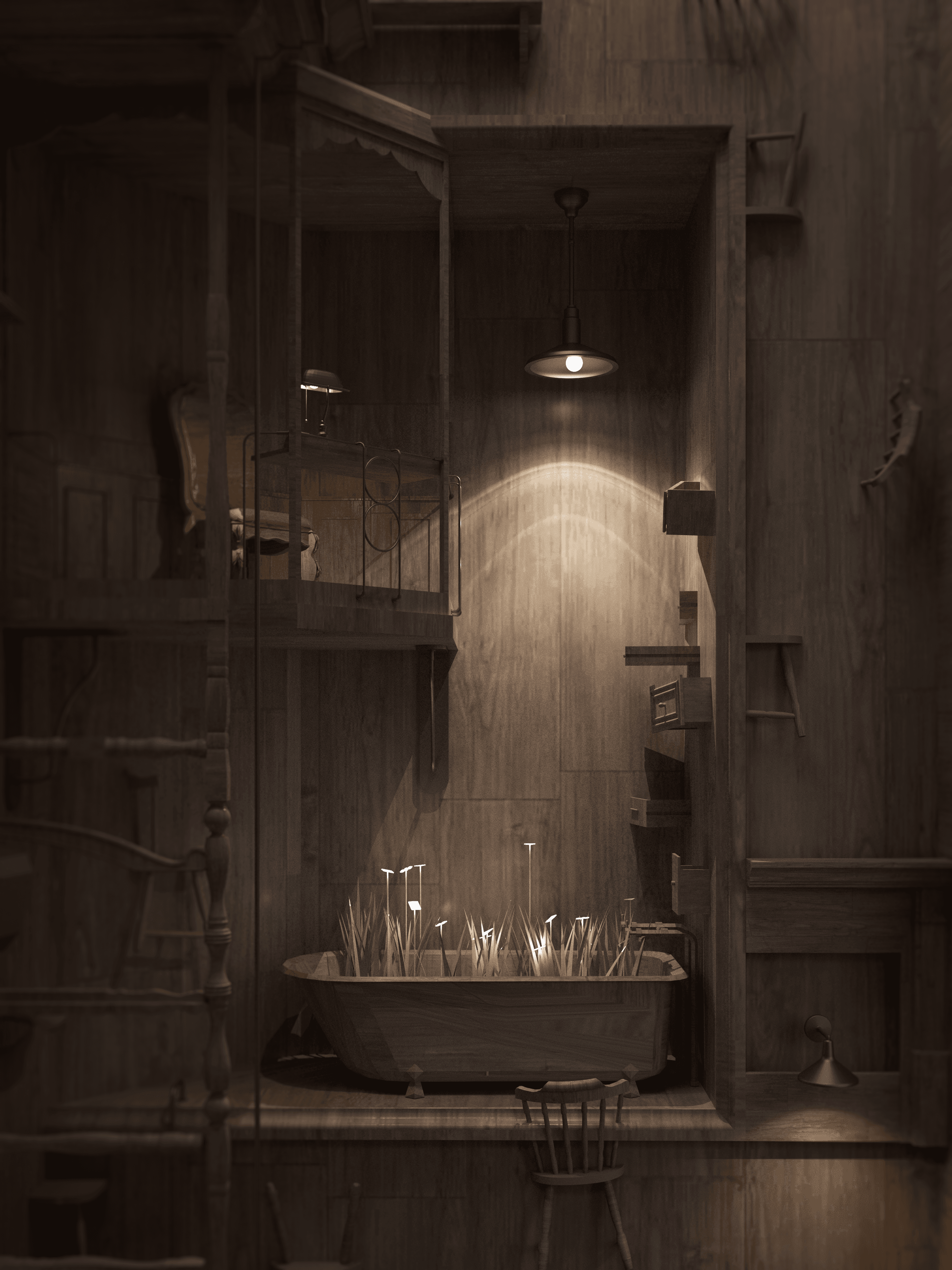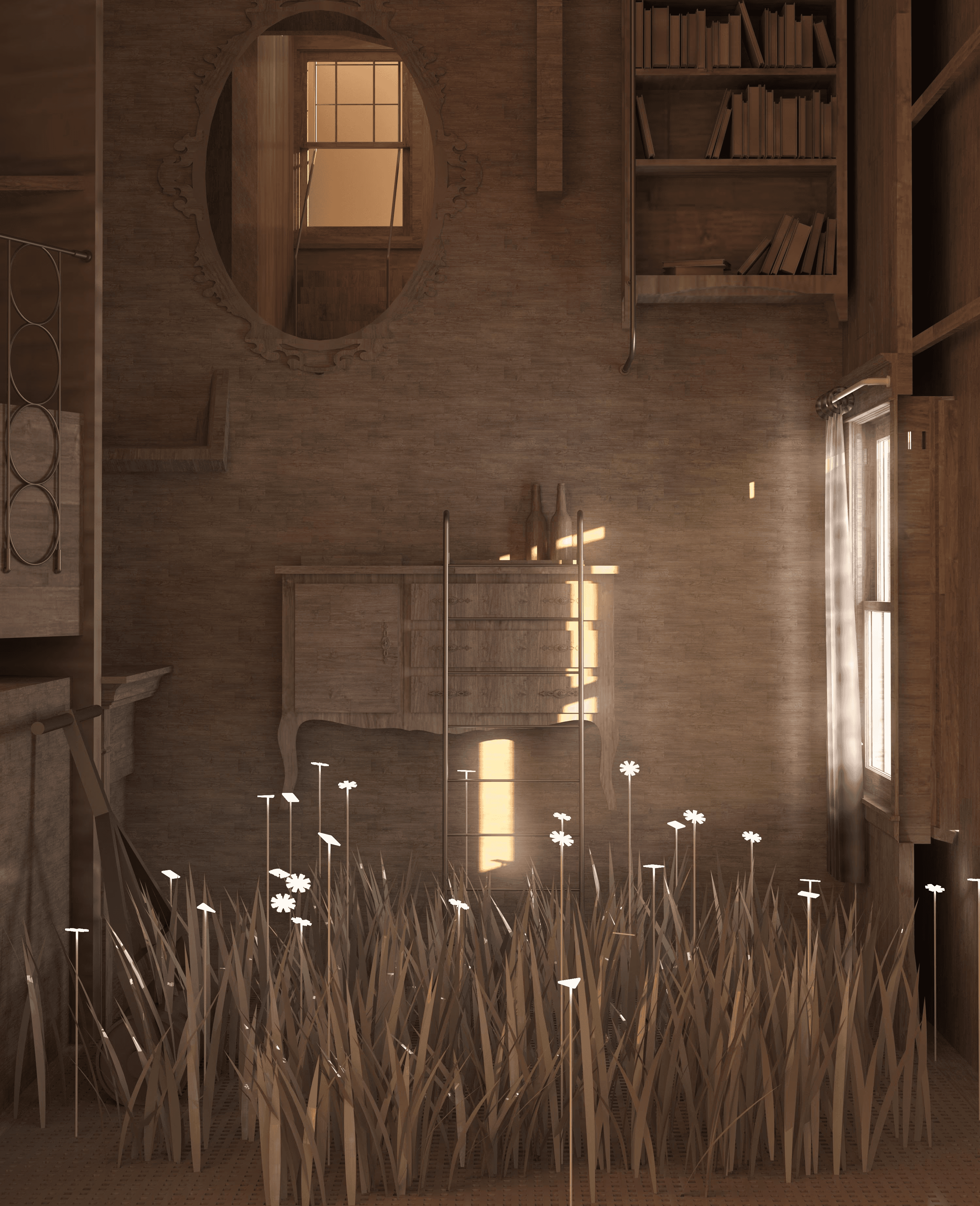 Parallel Infusion set in the speculative context of 2052, the project asks how interior space might change when food is reduced to a highly efficient form of fuel, and what kinds of spatial, sensory, and cultural rituals could bring experience back into everyday nourishment. Developed through installation, narrative staging, and spatial design, the project reimagines Charleston House as a site where consumption becomes a bodily and aesthetic act again, resisting a future defined solely by standardisation and efficiency.