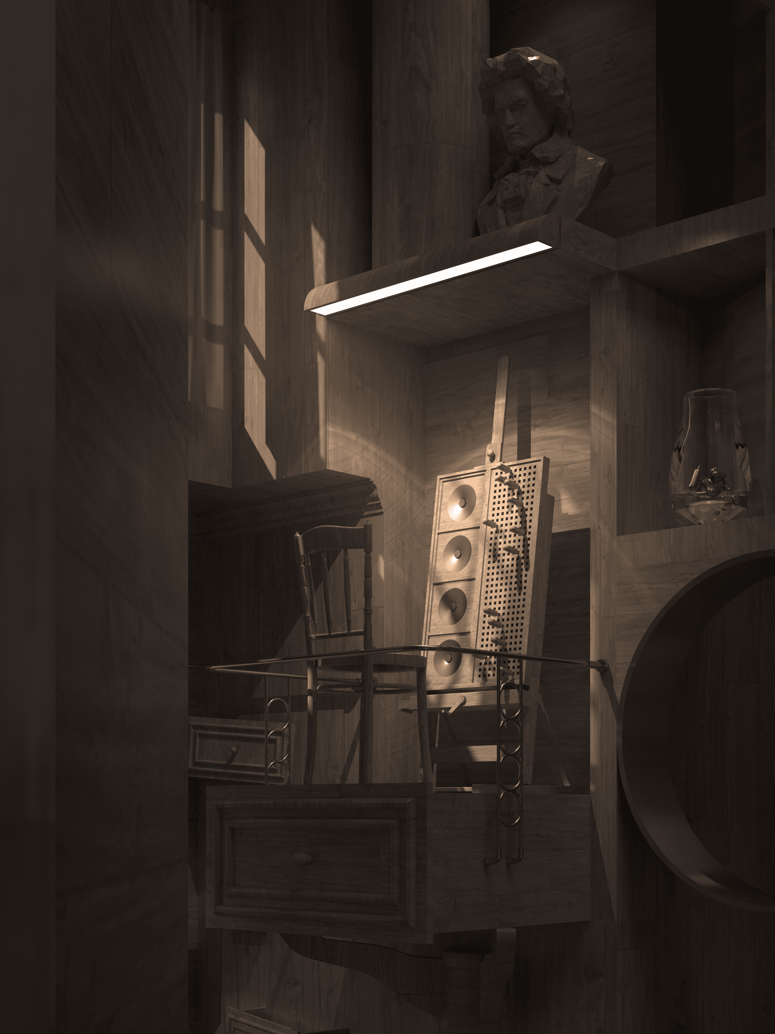The project is ultimately a critique of futures shaped only by efficiency. Rather than accepting optimisation as the inevitable direction of food culture, Parallel Infusion proposes another possibility: one in which interiors can preserve ambiguity, sensuality, and emotional depth. It reflects my broader interest in how space, narrative, materials, and bodily experience can work together to resist flattening logics and generate alternative ways of living.