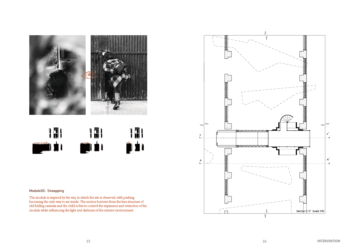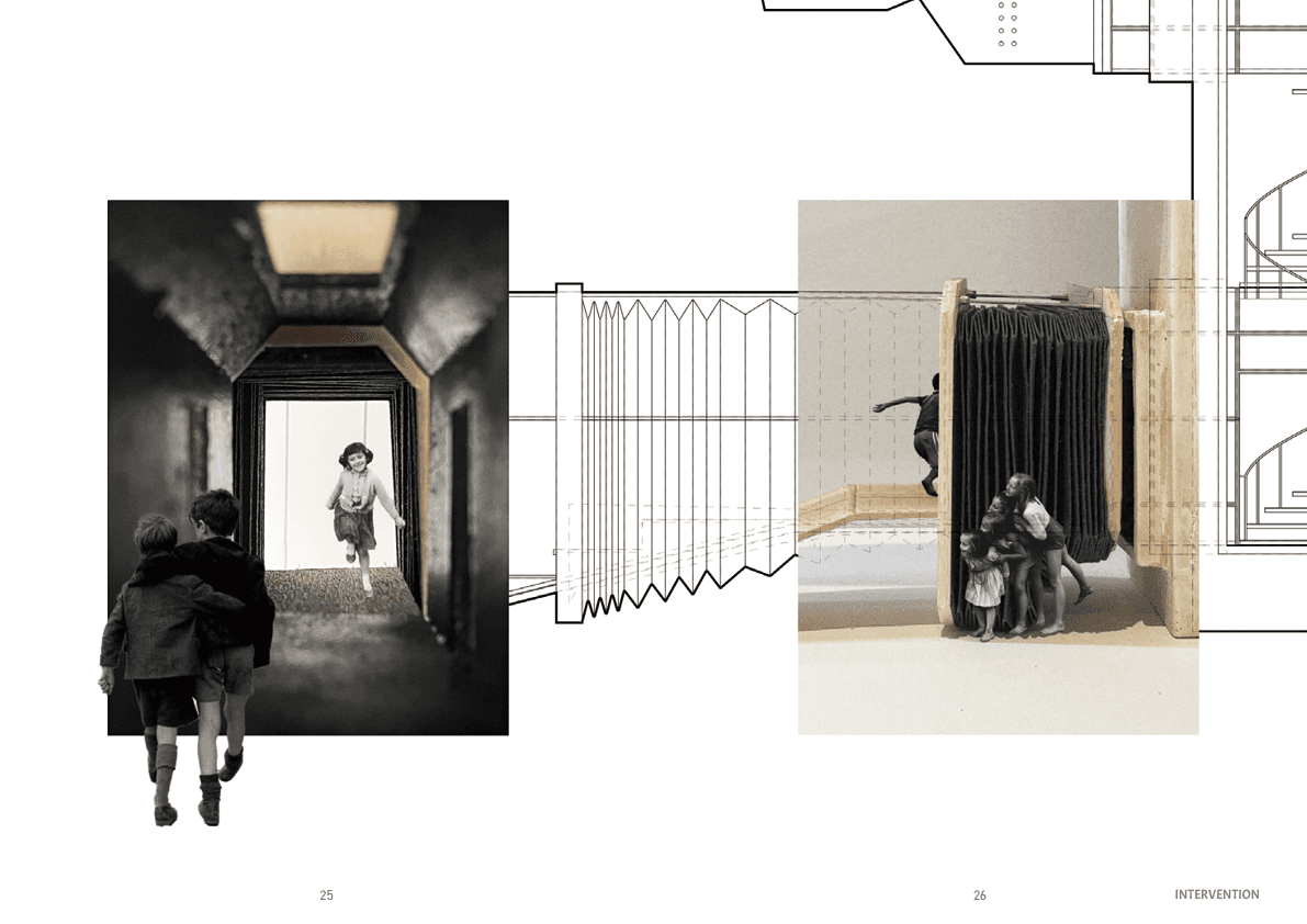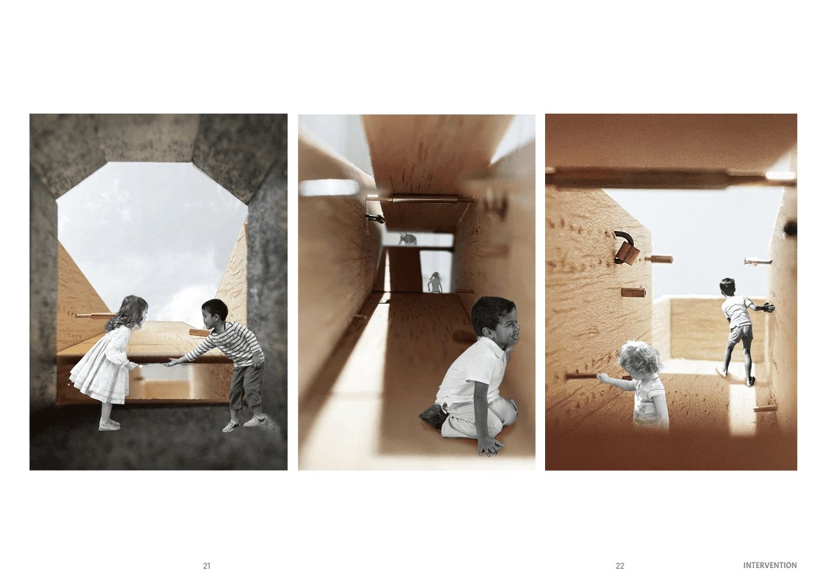 In response, I redesigned the building as a framework for open-ended play and developed a new play component for children. The intervention does not prescribe a single function or fixed narrative, but supports multiple forms of climbing, gathering, balancing, hiding, and reimagining. By extending the existing architecture instead of replacing it, the project turns the site into a more indeterminate and generative environment, where play becomes a way of discovering space rather than simply occupying it.