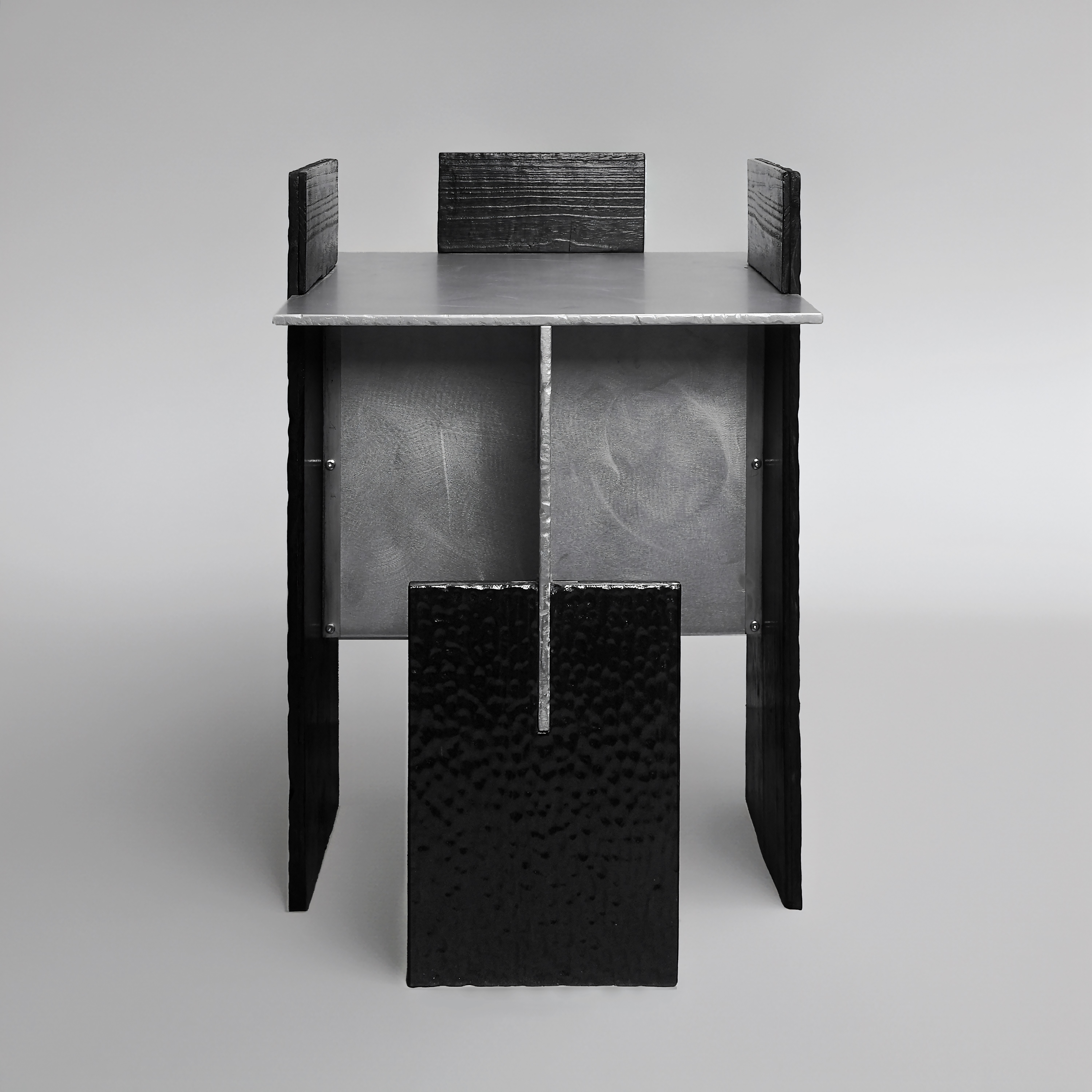 Swampchair is simple and robust in structure, yet its intention goes beyond function alone. It is a piece of furniture, but also a daily object that carries a conceptual and sculptural charge. By holding together division and continuity, contrast and resonance, the chair proposes a way of thinking about design in which materials do not merely serve form, but actively shape the meanings and tensions embedded within it.